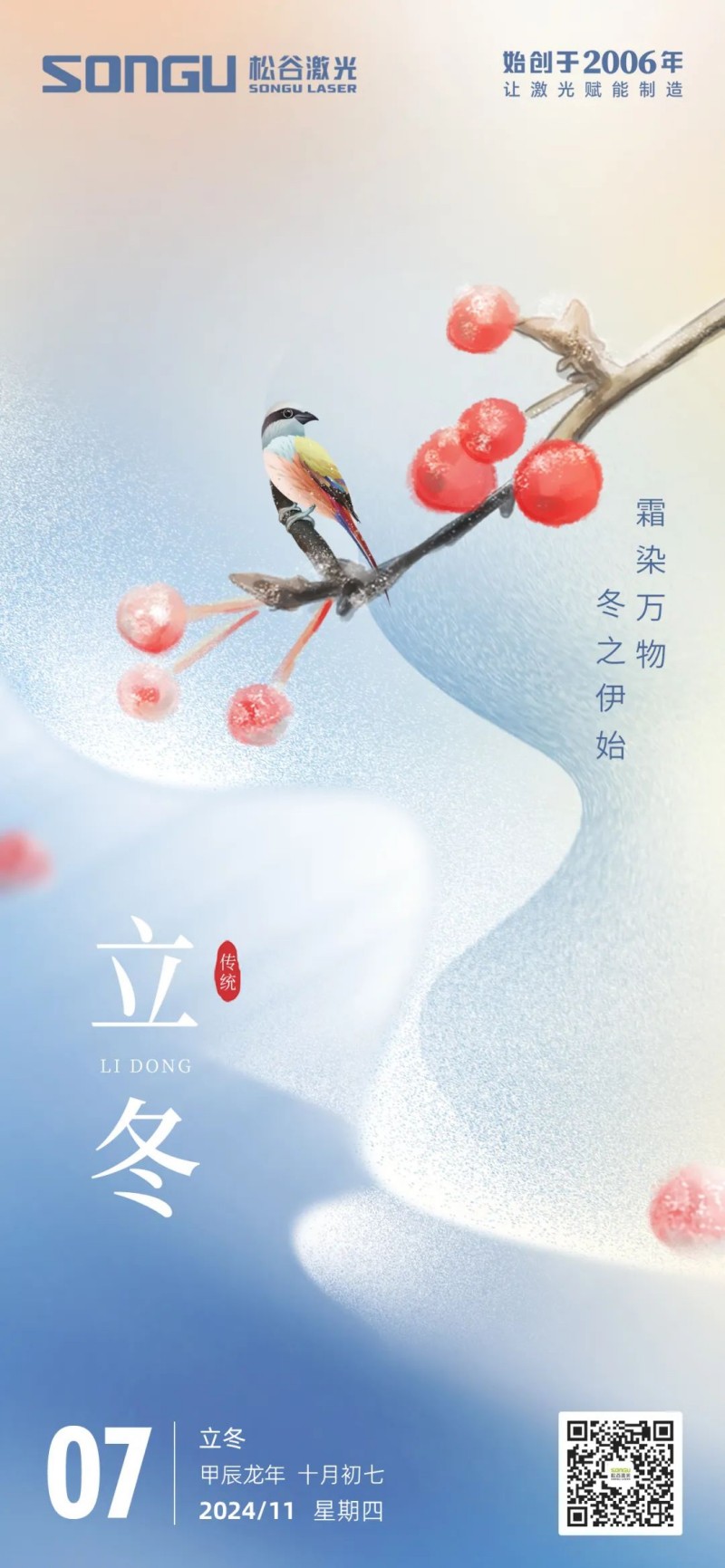 冬至已至,寒梅待放,松谷激光科技在這個(gè)寓意著團(tuán)圓與希望的節(jié)氣里,向每一位合作伙伴、客戶及全體員工致以最溫暖的祝福: