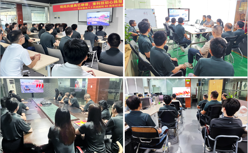 9月3日,紀(jì)念中國人民抗日戰(zhàn)爭暨世界反法西斯戰(zhàn)爭勝利80周年大會在北京天安門廣場隆重舉行。徐州松谷激光產(chǎn)業(yè)園的全體員工齊聚在會議室、生產(chǎn)車間、辦公室、餐廳等場地,莊重端坐,神情專注,共同觀看大會全程直播,認(rèn)真聆聽和學(xué)習(xí)大會講話精神,向偉大勝利致敬,汲取奮發(fā)前行的強大力量。