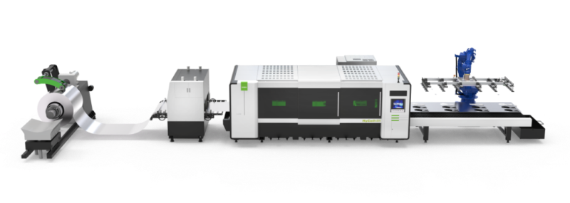 一體四工位,開卷、矯平、切割、分揀碼垛全流程自動化完成,實現(xiàn)不間斷生產(chǎn);采用高精度同步伺服,精準(zhǔn)切割,避免材料刮擦;幅面長度4m、6m、8m、12m,多幅面可選,可配置單頭或多頭激光切割頭,提升生產(chǎn)靈活性和產(chǎn)能;卷材原材利用率可提升10%,最大切割速度可達150m/min,節(jié)本增效。